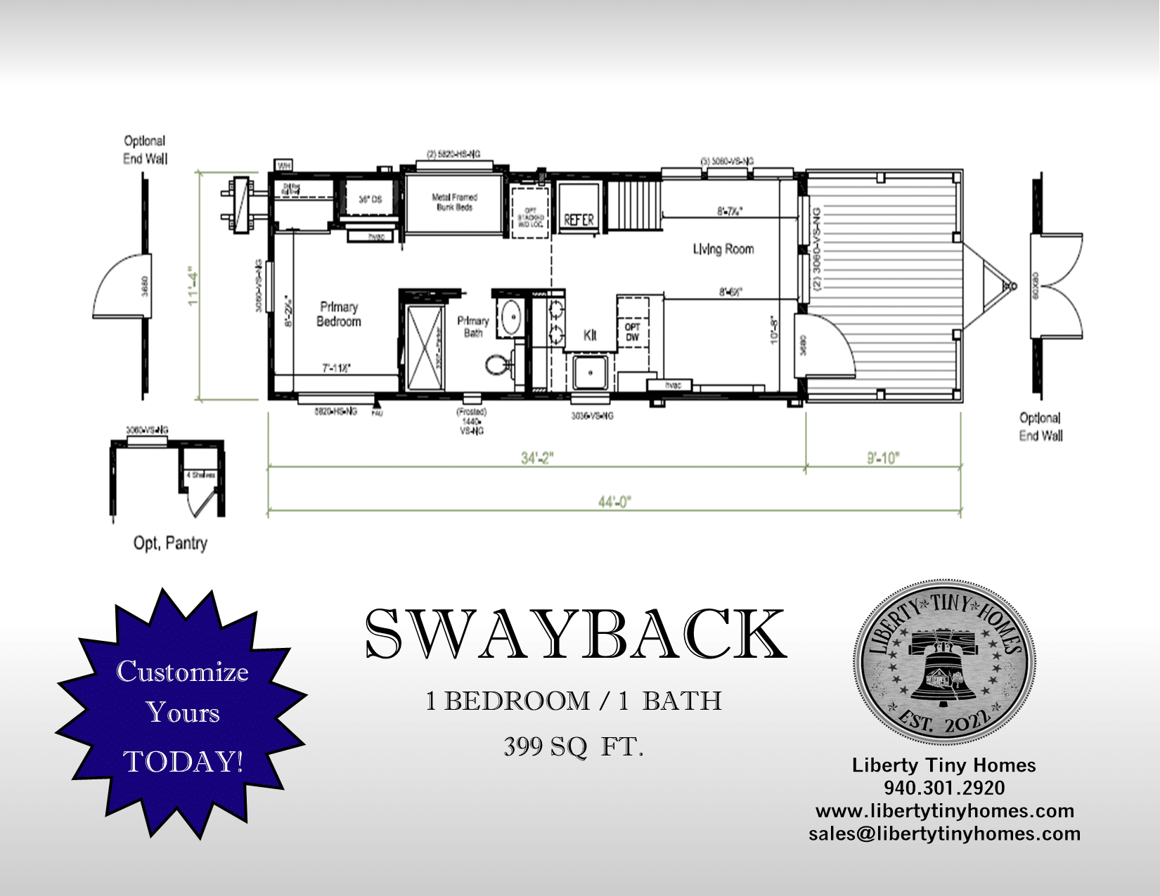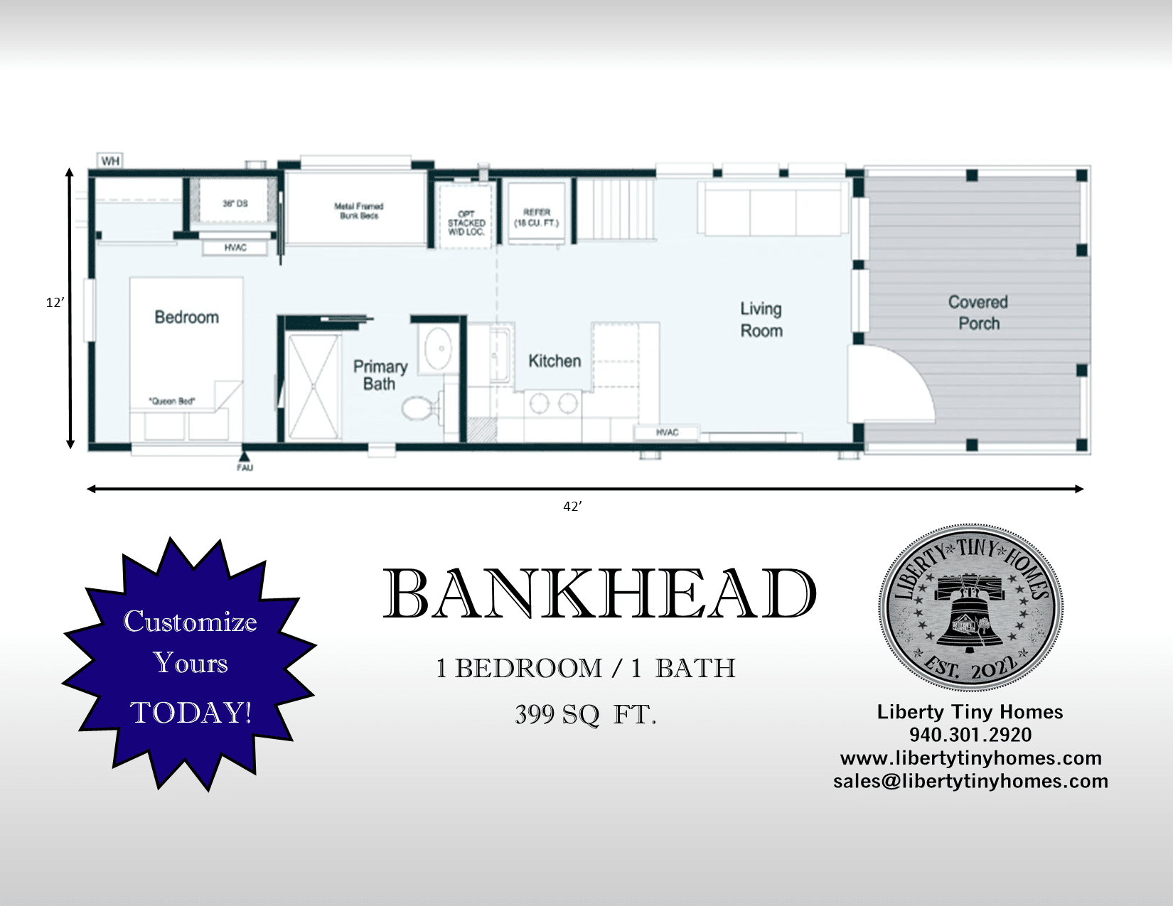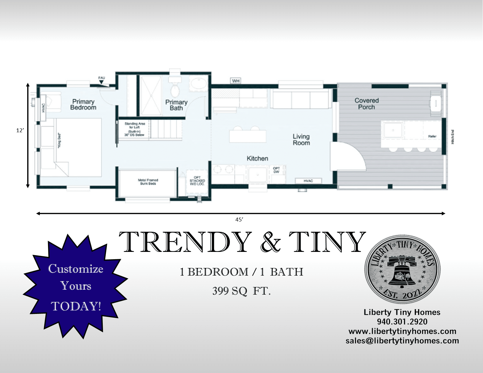 We offer many customizable options to make your Tiny Home PERFECT!! From upgraded tile to a fireplace on the porch, you can let your imagination run wild!